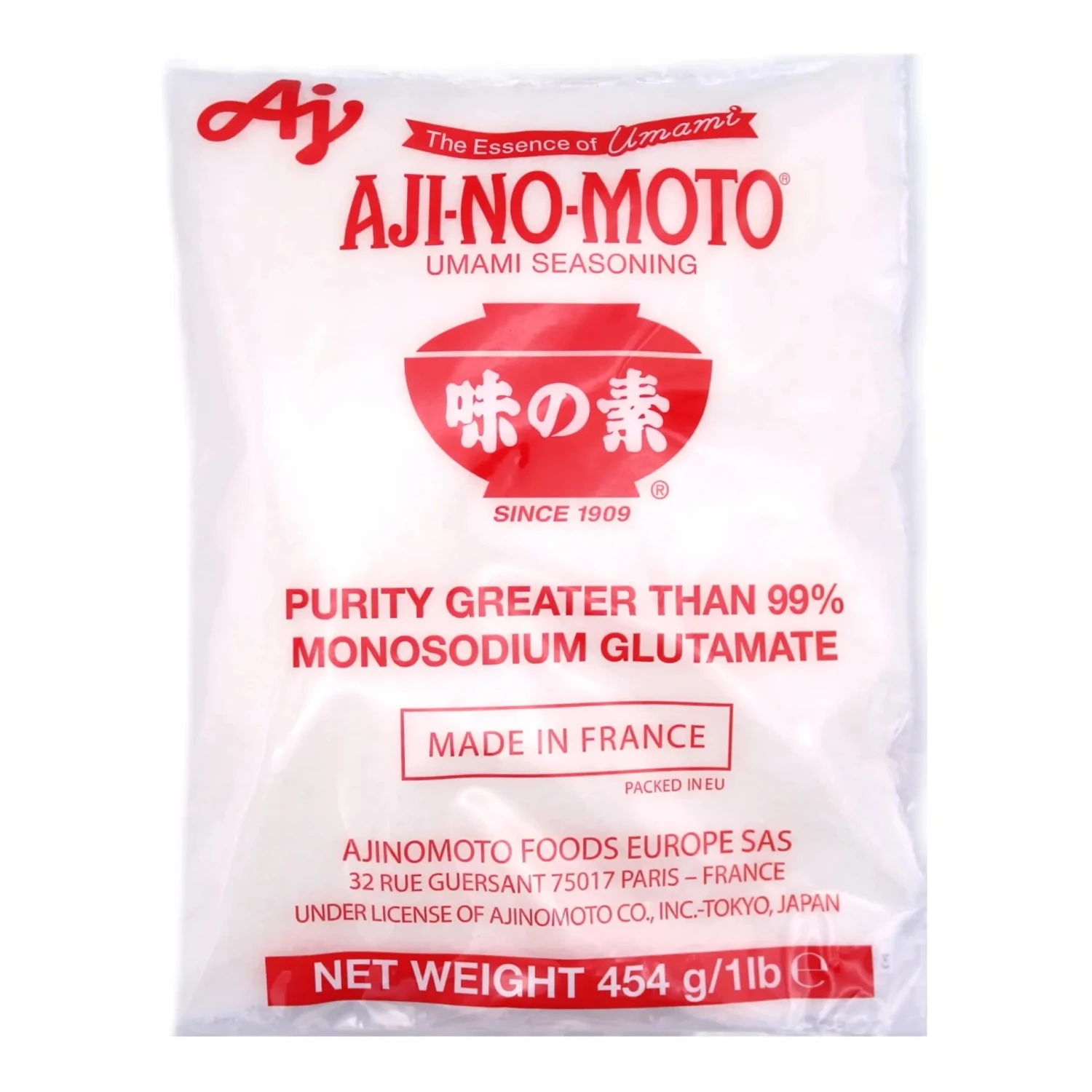 Description: Ajinomoto Monosodium Glutamate 454g. Also known as MSG, Monosodium Glutamate is used as an ingredient to enhance the natural flavours of foods such as meat, poultry, soups, stews, casseroles, gravies, seafood, snacks and vegetable dishes. Glutamate itself is also found naturally in foods such as corn, green peas, mushrooms and tomatoes.