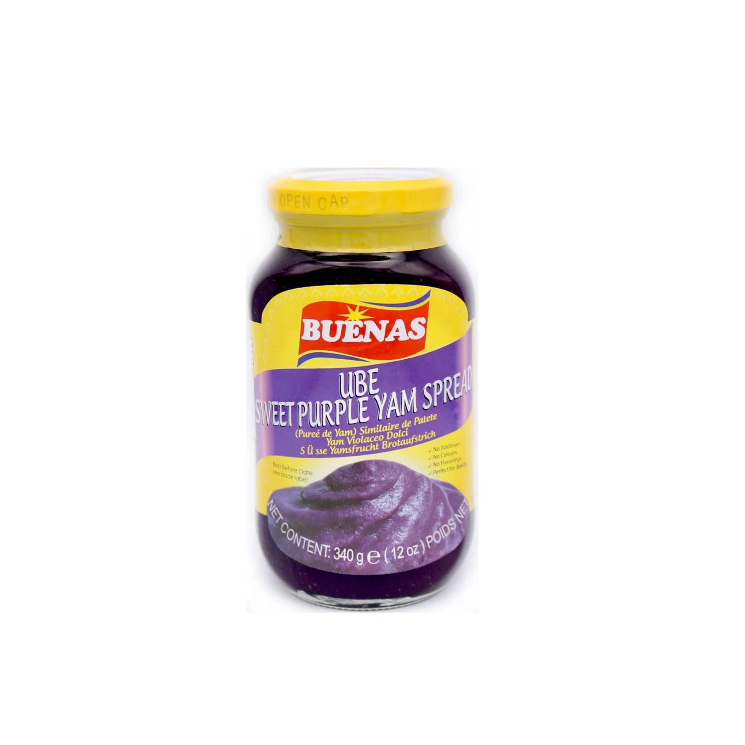 Description: Buenas Ube Sweet Purple Yam Spread is a 340g jar of pure delight that brings the essence of the Philippines to you. It is made from the finest purple yams, known as ube. It’s a versatile spread that can be used on your toasts, as a filling for pastries, or even as a topping for desserts.