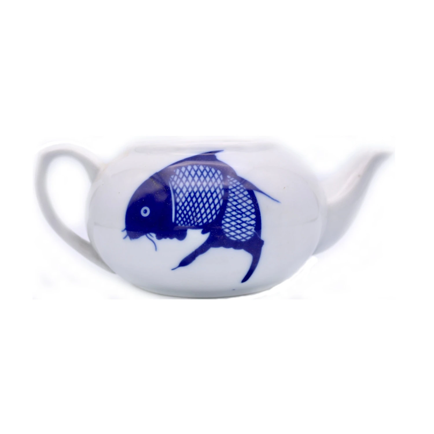 Carp Design Tea Pot (900 ml). Painted on quality porcelain and carefully glazed. Perfect for that special Chinese tea brew. The timeless design of this tea pot will retain its beauty year after year, as well as being resistant and durable. Tea always looks delicious from this!