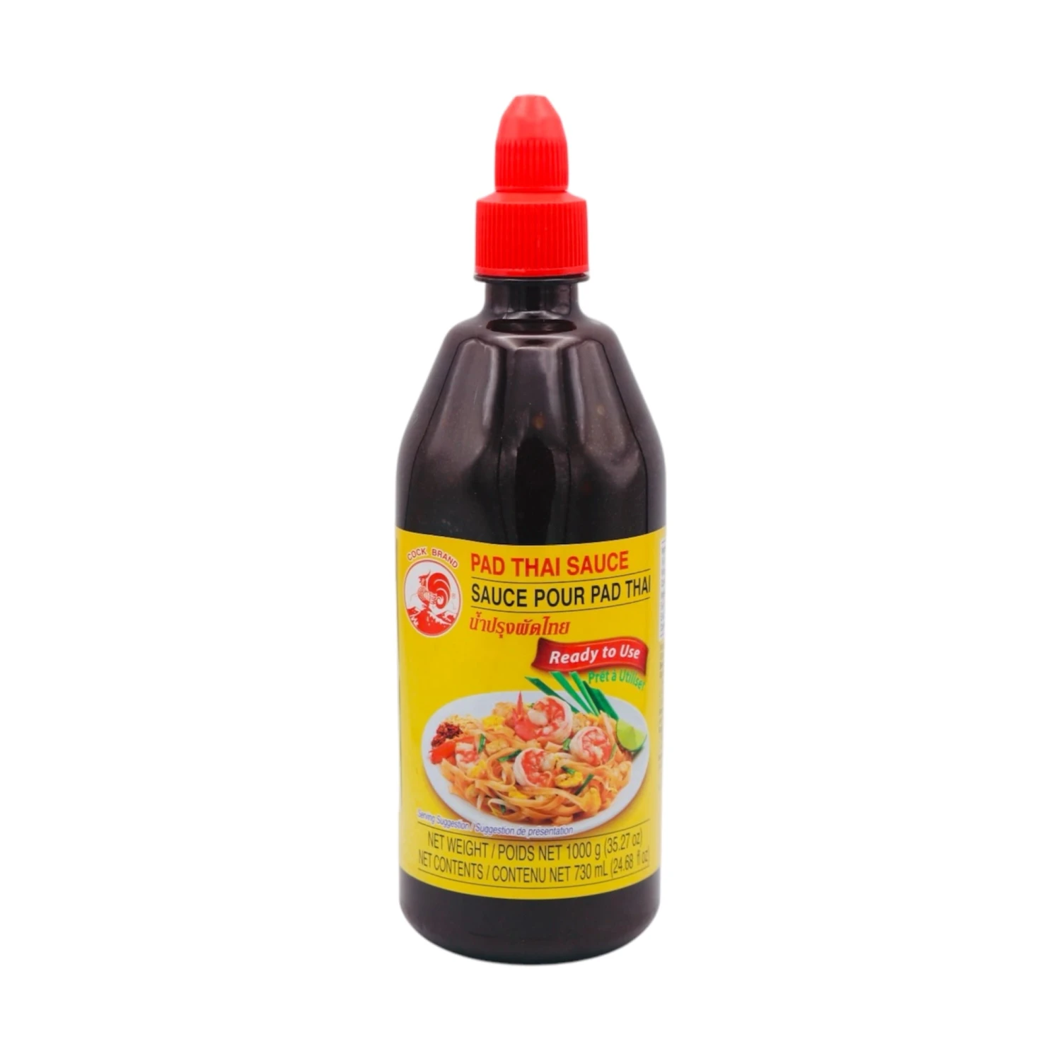 Description: Cock Brand Pad Thai Sauce 730ml. Cock Brand Pad Thai Sauce 730ml offers a flavourful blend of traditional Thai spices, including tamarind, chilli, and garlic. Made with high-quality ingredients, it brings authentic taste and convenience to homemade pad Thai dishes. A must-have for any Thai cuisine enthusiasts.