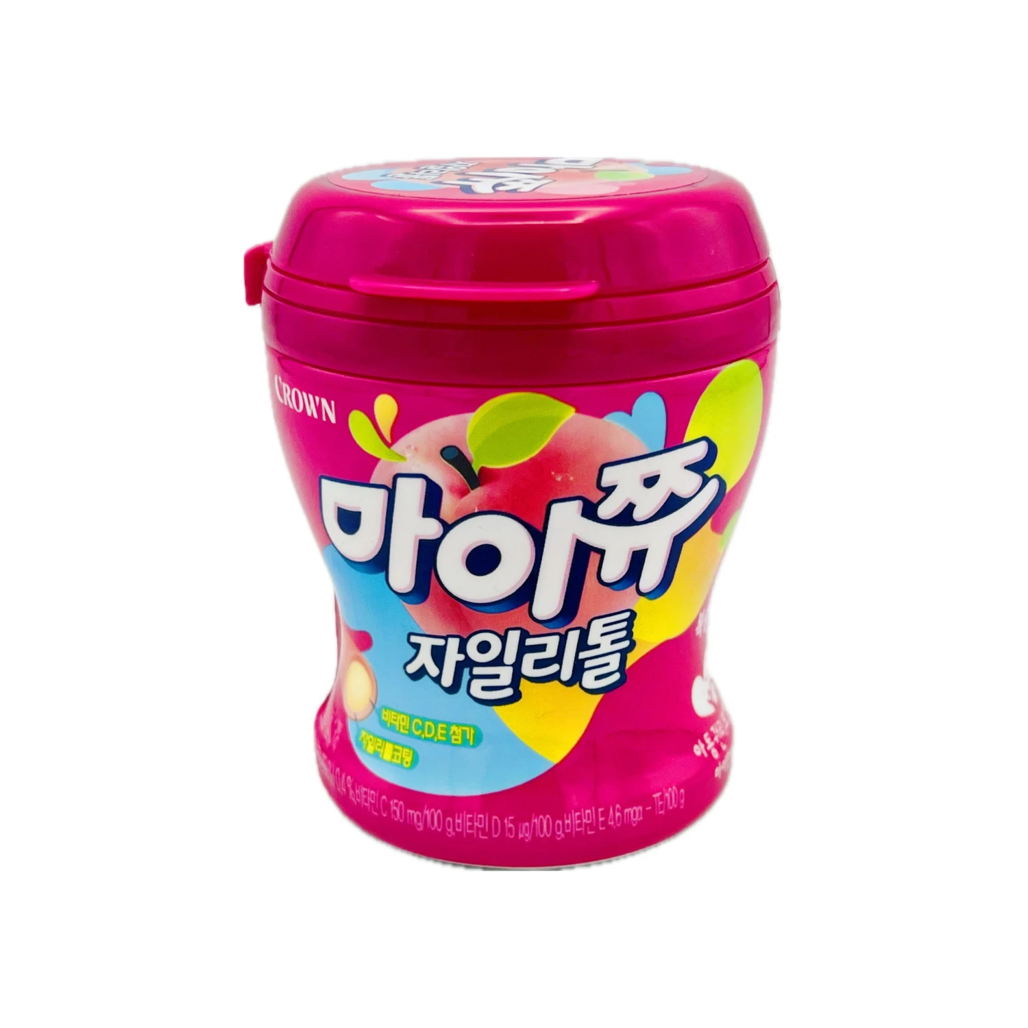 Ingredients: Corn Syrup, Sugar. Sweetener:xylitol E967, Fondant (Sugar, Corn Syrup), Vegetable Oil(Hydrogenated Palm Kernel Oil), Emulsifier:gum Arabic E414, Gelatin, Sweetener: Maltitol Syrup E965(ii), Acidity Regulator Citric Acid E330, Peach Concentrate, Milk Calcium, Emulsifier, Mixed Yogurt Base(Milk), Artificial Flavour(Peach), Vitamin C, Gardenia Yellow, Beet Red, Refined Salt, Coating Agent, Purple Sweet Potato Coloúr, Vitamin E.