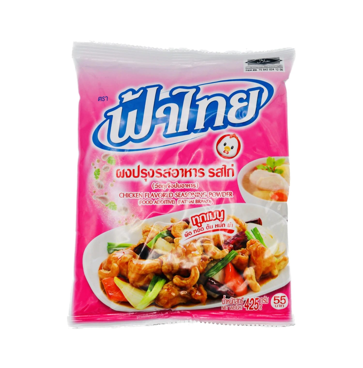 Description: Fa Thai Chicken Flavoured Seasoning Powder (Food Additive) 400g. “Fa Thai” chicken seasoning powder is meat and spices. Great flavour to enjoy in every one of your menus, whether stir-trying, deep-trying, soup-making, marinating or seasoning salad.