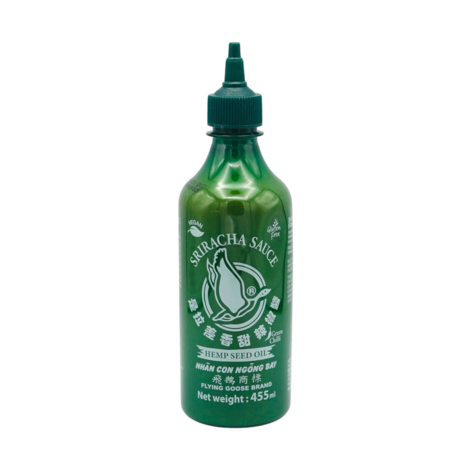Description: Flying Goose Sriracha Hemp Seed Oil Green Chilli Sauce 455ml. Experience a bold and flavourful twist with Flying Goose Sriracha Hemp Seed Oil Green Chilli Sauce. Our spicy sauce contains the perfect balance of Sriracha flavour and the added health benefits of hemp seed oil. Elevate any dish with this rich and flavourful sauce.
