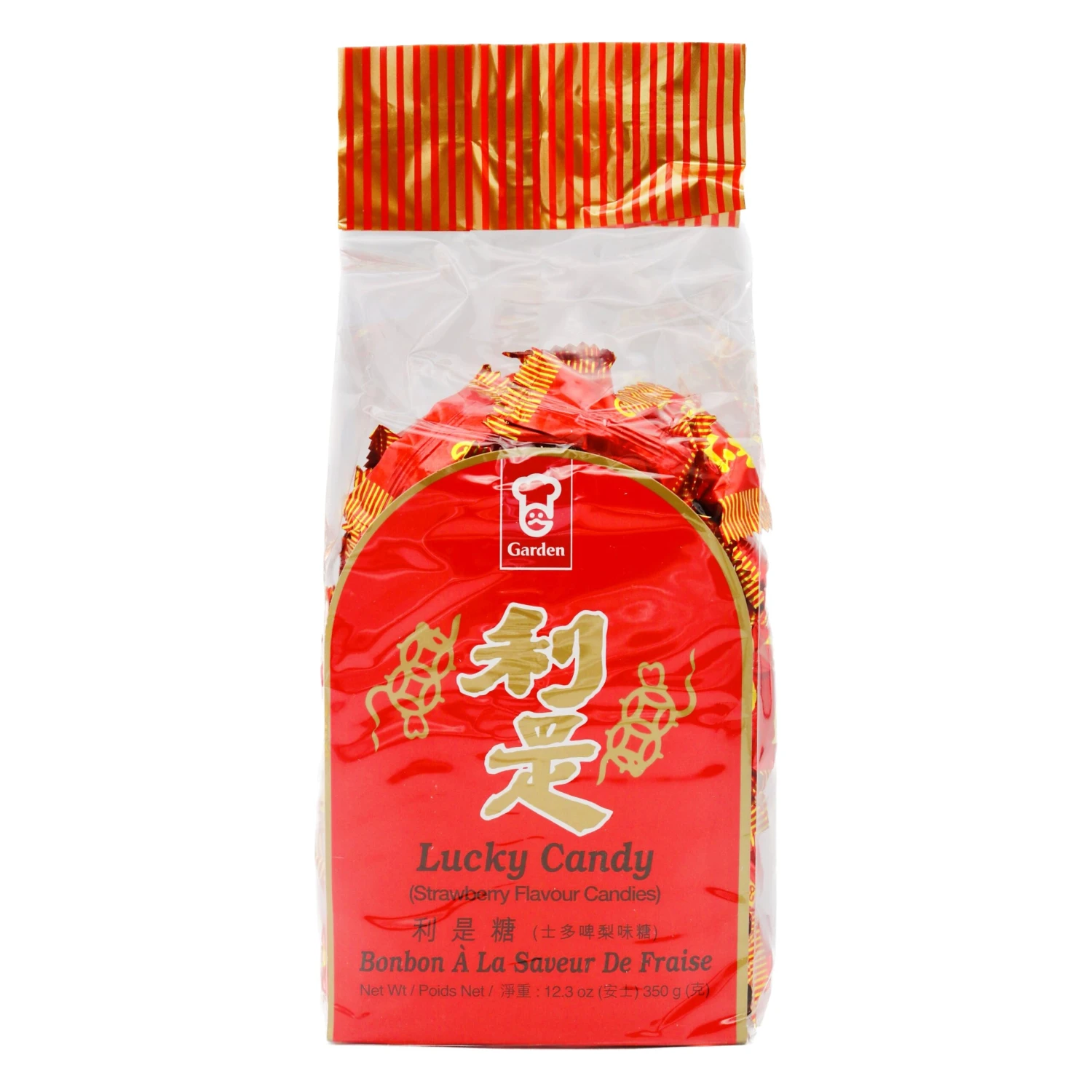 Description: Garden Lucky Candy 350g. Strawberry flavoured sweets in individual wrappers. Commonly eaten at Chinese New Year and other festivals for luck!p>
