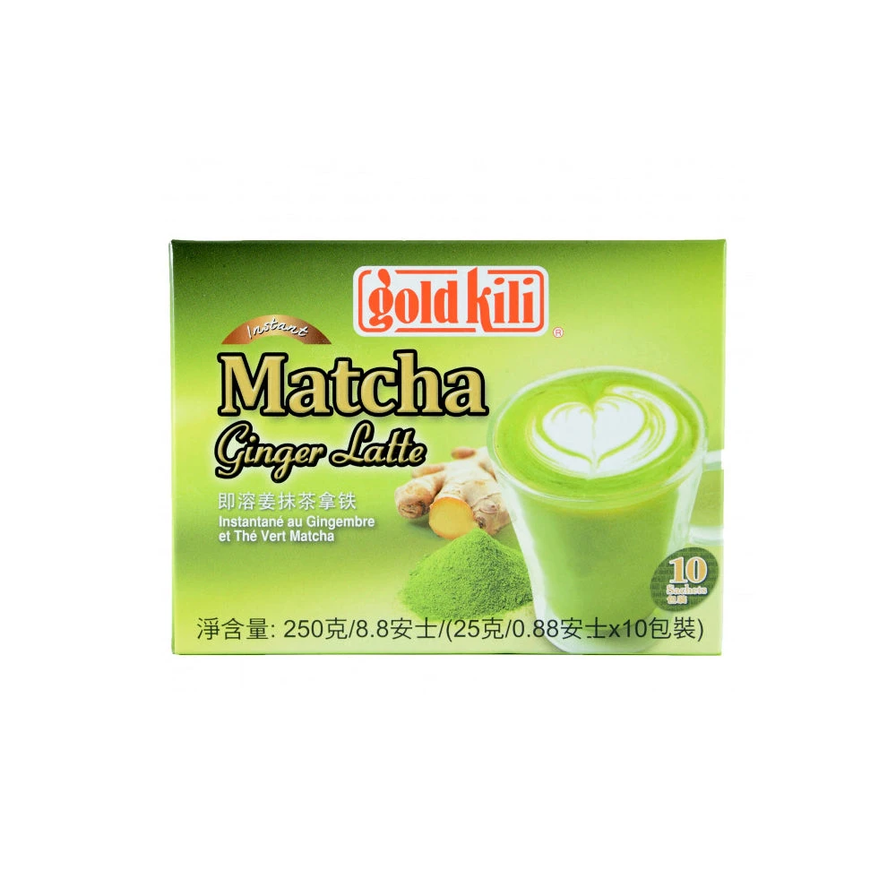 Description: Gold Kili Instant Matcha Ginger Latte 250g (10X25g). Gold Kili Instant Matcha Ginger Latte is made using natural ginger extracts and high quality Matcha Powder that have undergone traditional method of production which preserves its freshness, green tea fragrance and nutrients.