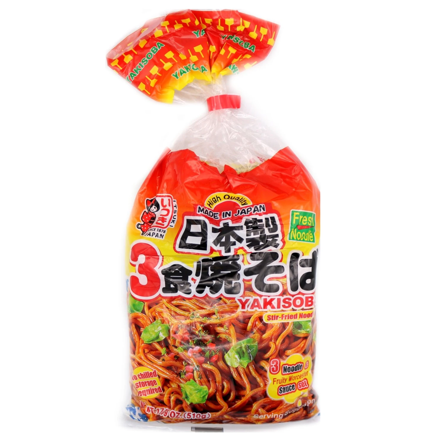 Description: Itsuki Yakisoba Stir-Fried Noodle With Sauce 510g (3x170g). A packet of delicious yakisoba stir-fried noodles from Japan.