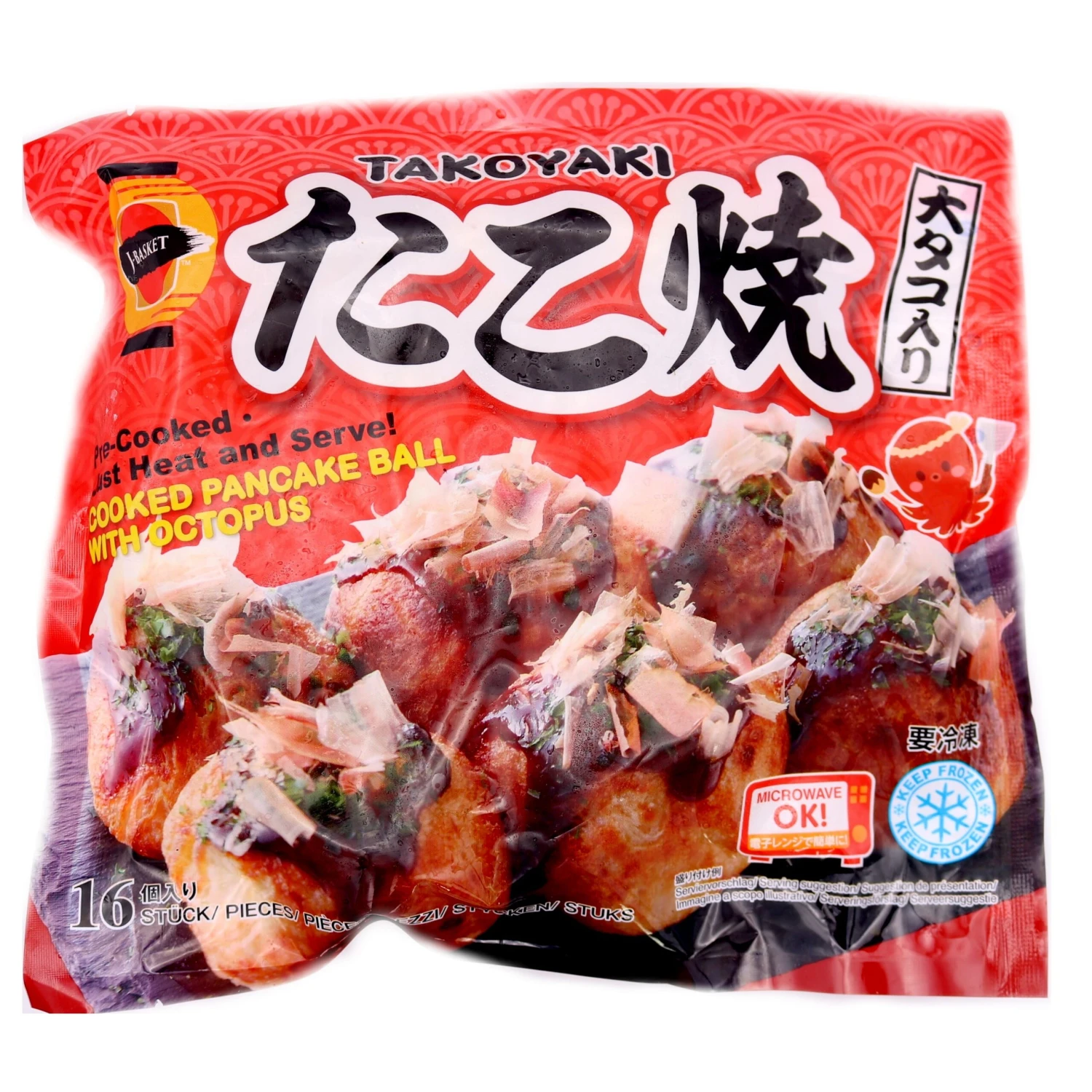Description: Not to brag, but just a bite and you’ll be hooked. That’s the power of J-Basket Takoyaki, the delicious Japanese octopus balls ready to eat in minutes. These frozen takoyaki are made from fluffy batter, tender octopus pieces, and traditional takoyaki sauce.