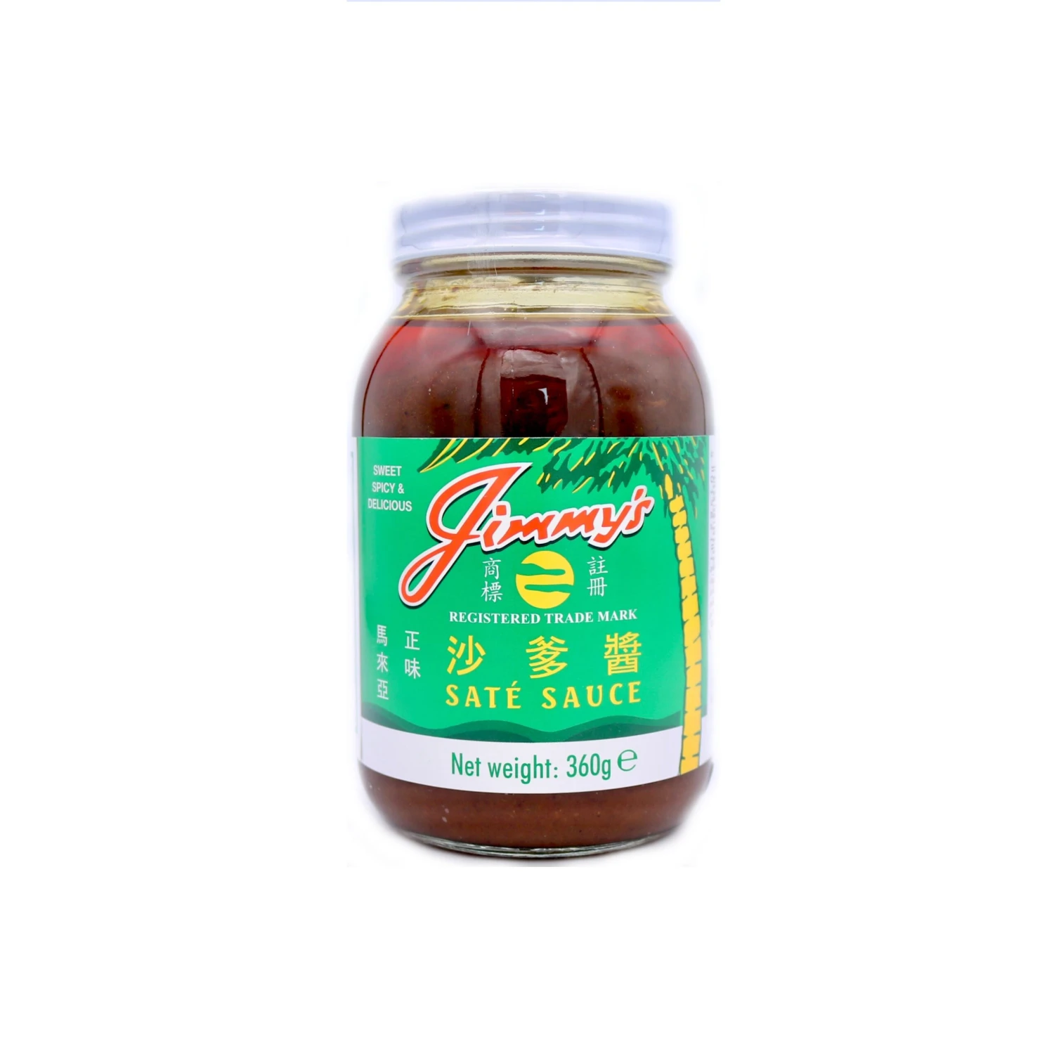 Description: Jimmy’s Satay Sauce 360g. A delicious aromatic blend of peanuts, oriental herbs and spices. It has a wonderful aroma and is the product of an authentic Malaysian recipe. Satay sauce can be used as a dipping sauce and also in marinades and stir-fries to flavour various foodstuffs such as meat, vegetables, seafood and noodles.