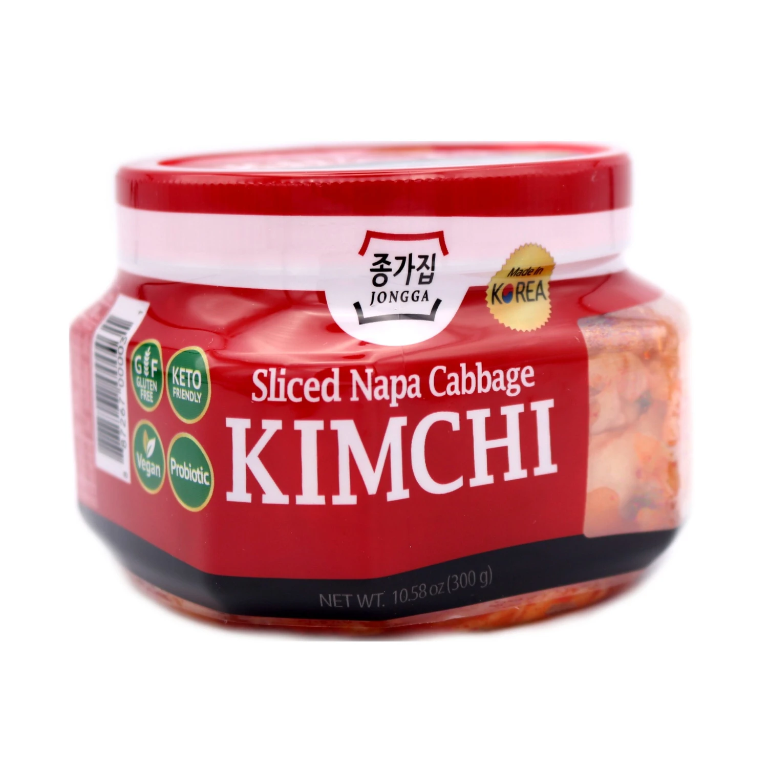 Description: Jongga Sliced Napa Cabbage Kimchi 300g. Kimchi is Korea’s national dish. Made from napa cabbage, garlic, onions, chilli and kelp based sauce. A spicy, sourish pickle that is eaten as a side dish at almost every meal. Can be used it cooking as well. Now in a convenient tub!