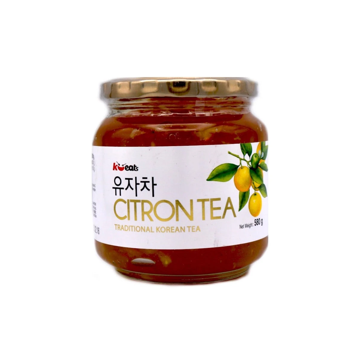 Description: K-Eats Citron Tea 580g. A jar of delicious traditional citron tea from Korea, perfect as a refreshing hot drink.