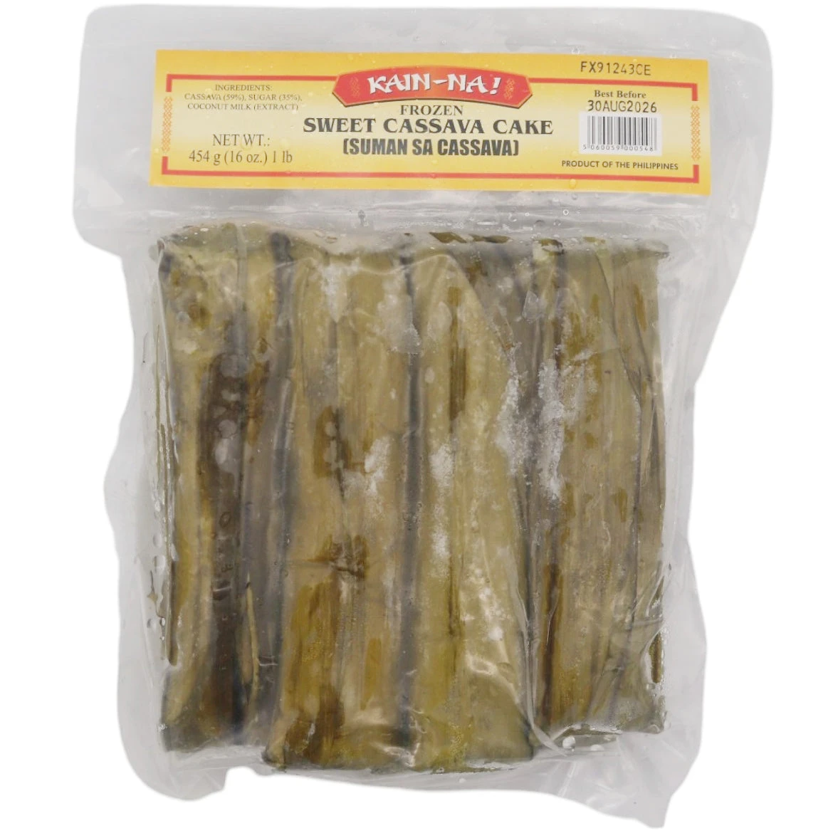 Description: Kain-Na! Sweet Cassava Cake (Suman Sa Cassava) 454g. Indulge in a delectable treat with Kain-Na! Sweet Cassava Cake (Suman Sa Cassava) 454g. Made from fresh cassava and sweetened with just the right amount of sugar, this traditional Filipino delicacy is a perfect blend of flavour and texture. Enjoy the taste of home in every bite.