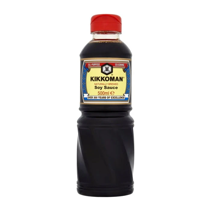 Description: Kikkoman Soy Sauce 500ml. This fine flavoured seasoning is so versatile. A must-buy Asian ingredient.