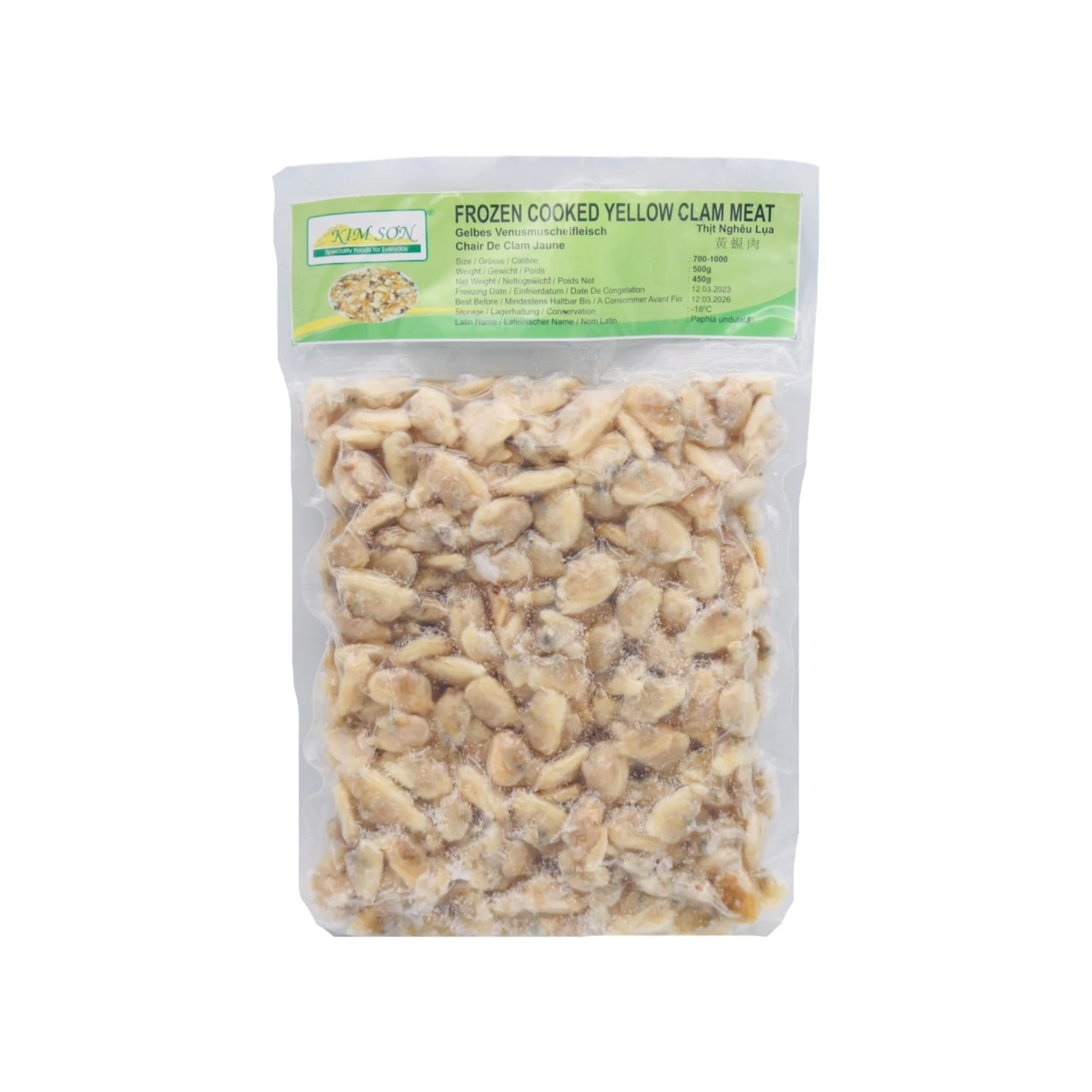 Description: Kimson Cooked Yellow Clam Meat (Size 700-1000) 500g (Frozen). Discover the delicious flavour and convenience of Kim Son Cooked Yellow Clam Meat. Our frozen 500g pack contains perfectly-sized 700-1000 clams, providing the ideal balance of taste and texture. Savour the benefits of this premium seafood, expertly prepared and ready to elevate your meals.