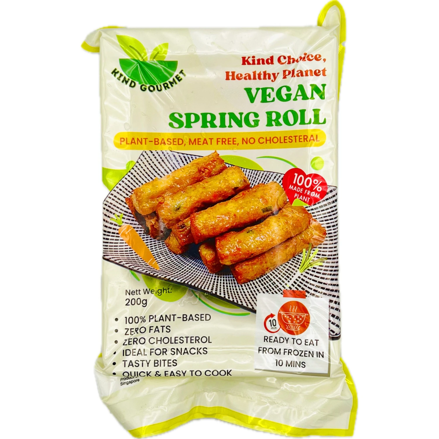 Description: Kind Gourmet Vegan Spring Roll 200g (Frozen). Indulge in the delicious and healthy Kind Gourmet Vegan Spring Roll. Made with fresh and natural ingredients, this frozen treat is perfect for those looking for a tasty, plant-based option. With each bite, you’ll experience a flavourful blend of ingredients and feel good about making a nutritious choice.
