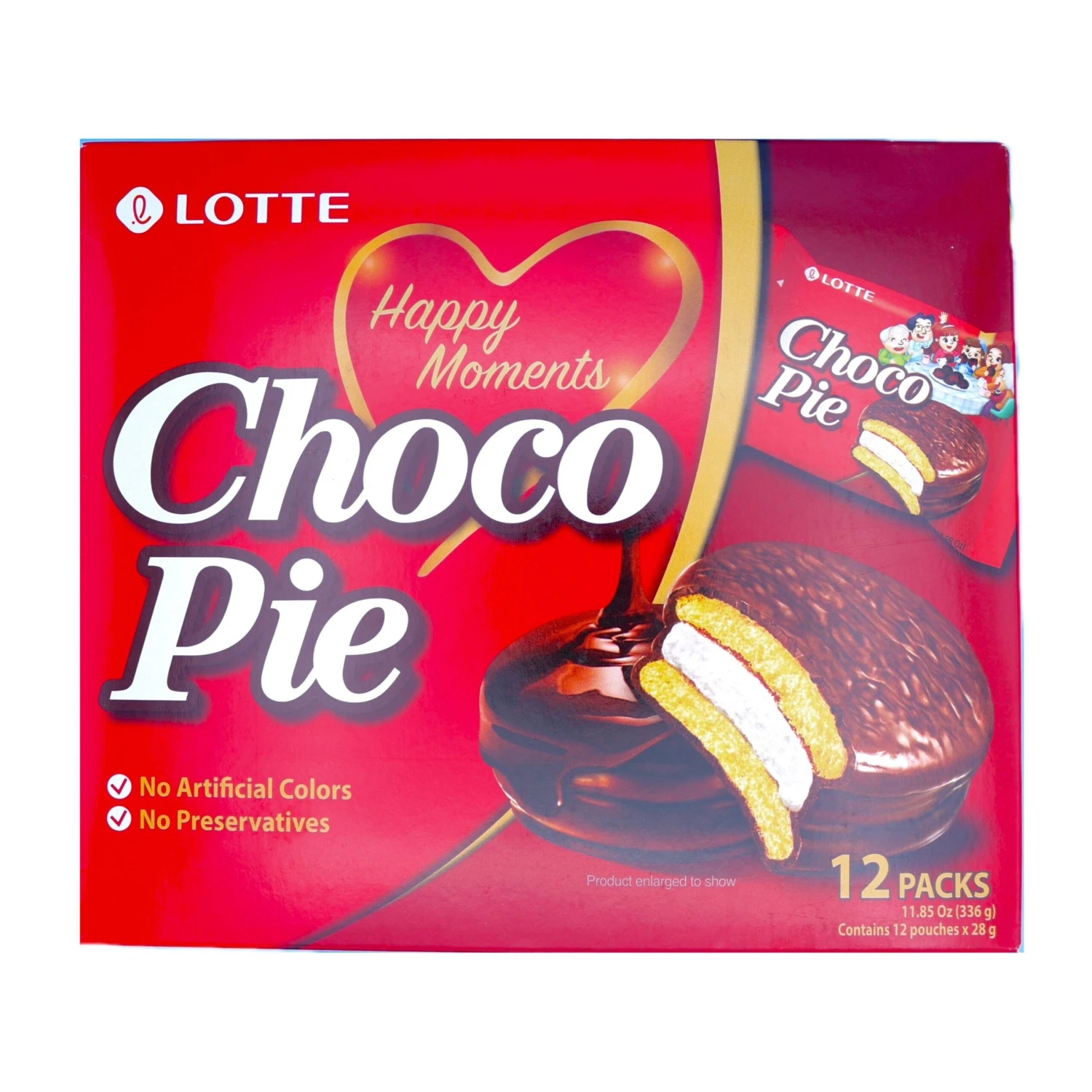 Description: Lotte Choco Pie 12 pieces – 336g. Lotte choco pie is a mouth-watering cake with marshmallow filling and a chocolate covering.Â