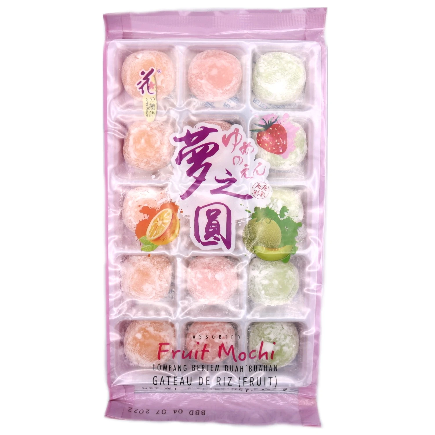 Description: Loves Flower Assorted Fruit Mochi (Strawberry, Orange, Hami Melon Flavours) 195g. A box of delicious assorted fruit mochi imported from Taiwan. Perfect for sharing or as a gift.