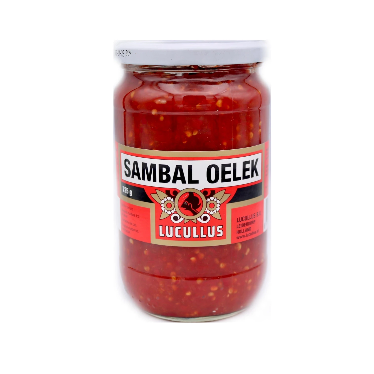 Description Lucullus Sambal Oelek 725g. Our Lucullus Sambal Oelek is a traditional Indonesian sauce used in Indonesian cuisine, that can also be used as a condiment or dip. Its consistency is halfway between a salsa and a paste.