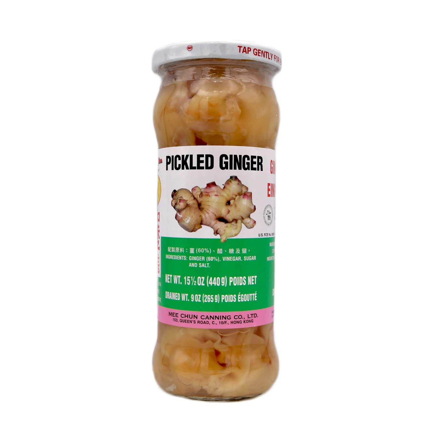 Description: Mee Chun Pickled Ginger 450g. A jar of pickled ginger from Hong Kong, perfect for cooking.