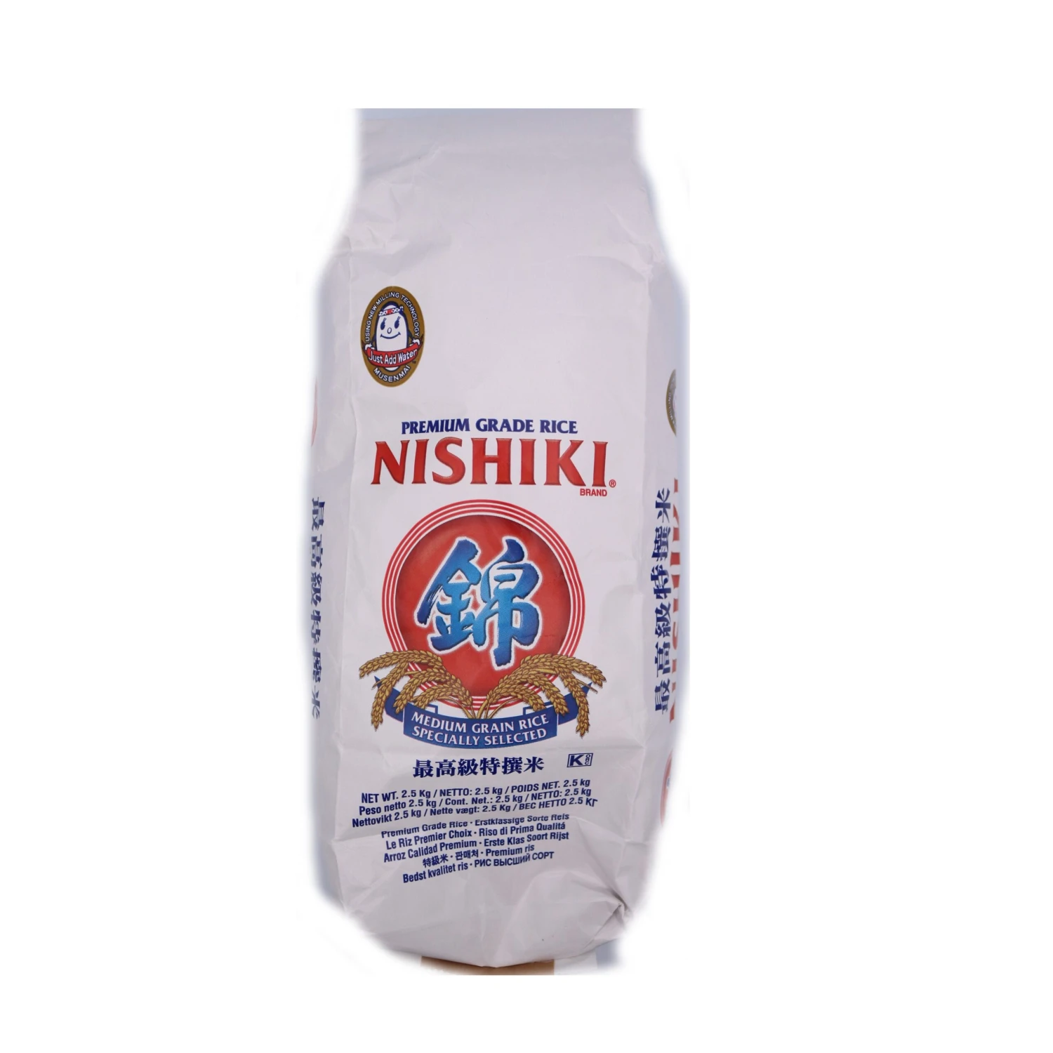 Description: Introducing Nishiki Medium Grain Rice, a premium quality 2.5KG package of the finest rice sourced from the lush fields renowned for producing the best grains. Nishiki’s medium grain rice is celebrated for its versatility, perfect texture, and ability to complement any dish, from the every day to the exotic. This rice is specially selected for its premium quality, ensuring each grain cooks up to a perfect, slightly sticky consistency that’s ideal for a wide range of culinary applications.