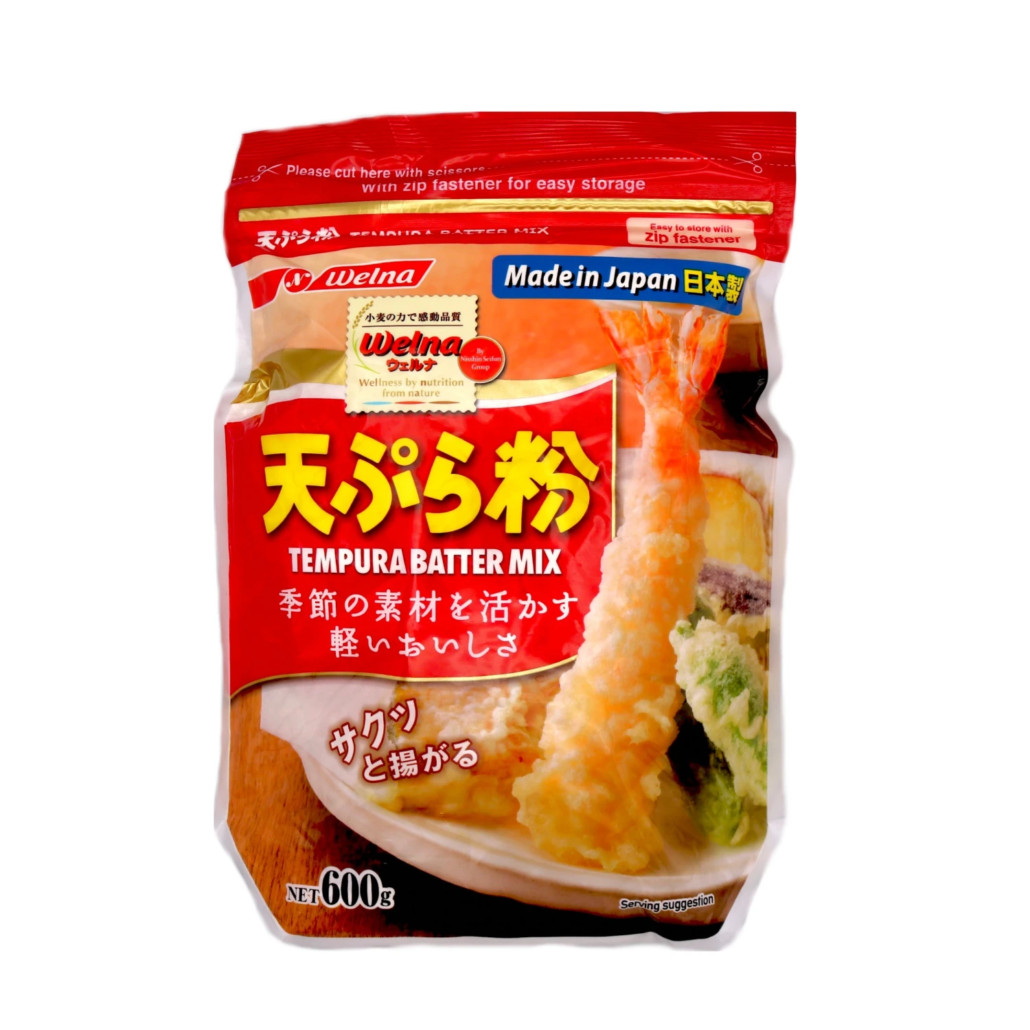 Description: Nissin Welna Tempura Batter Mix 600g. A packet of flour from Japan, perfect for making tempura dishes!