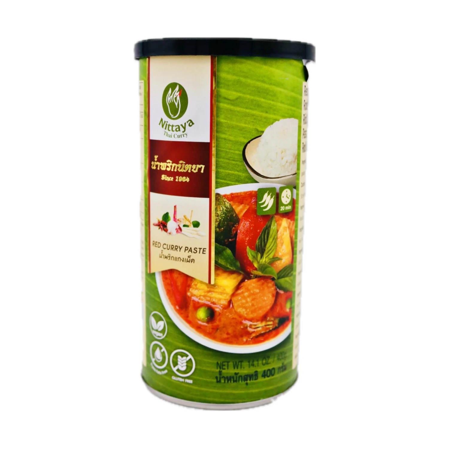 Description: Nittaya Red Curry Paste 400g. Craft delicious and authentic Thai cuisine with Nittaya Red Curry Paste. Made with fresh and flavourful ingredients, this paste is perfect for adding a spicy kick to your dishes. Enjoy the bold flavours of Thailand with every bite.