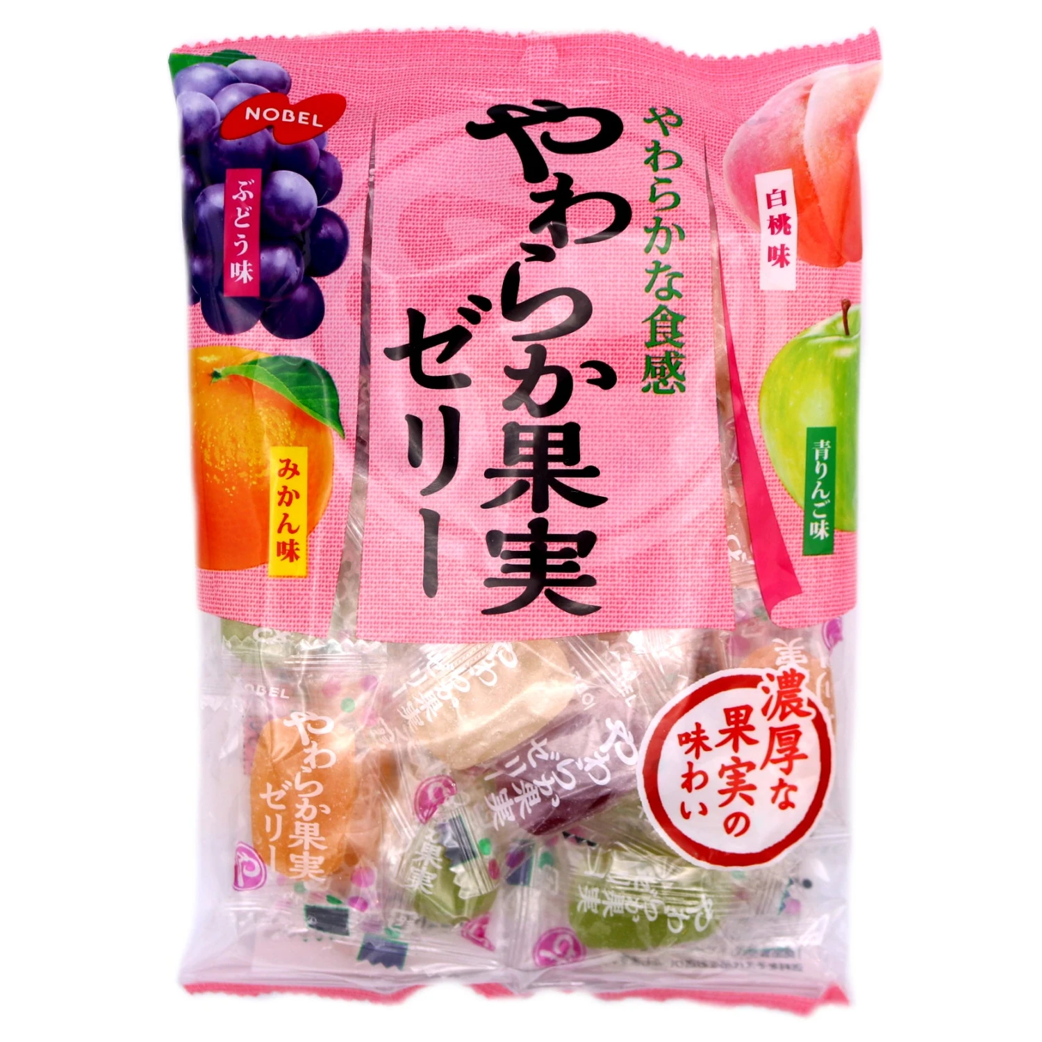 Description: Nobel Assorted Fruits Soft Jelly Sweets 230g. Firm jelly sweets with a soft and juicy texture. Flavoured with an assortment of concentrated grape, peach, mandarin orange and apple juices, these supple jelly sweets offer a satisfying bite of succulent, fruity goodness. Made from pectin for a gelatin-free chewiness that’s enjoyable for everyone, these sweets are softer than gummies offering a juicy squeeze of sweetness, that’s well-rounded by their tangy powder coating. Tongue-tingling, chewy and easy to share in individually-wrapped packaging, savour a fruity boost of flavour with every one of these squishy, delectable sweets.