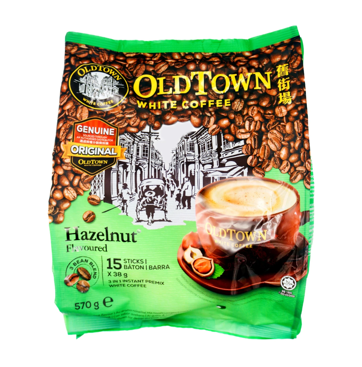Description: Old Town Instant White Coffee 3 in 1 – Hazelnut Flavoured (15 Sticks*38 g) 570g. Start your day with the delicious, creamy, nutty hazelnut flavour of Old Town Instant White Coffee 3 in 1. Each pack contains 15 individual sachets of 38g, with a total net weight of 570g. Enjoy the combination of coffee, sugar, and creamer for a convenient drink.