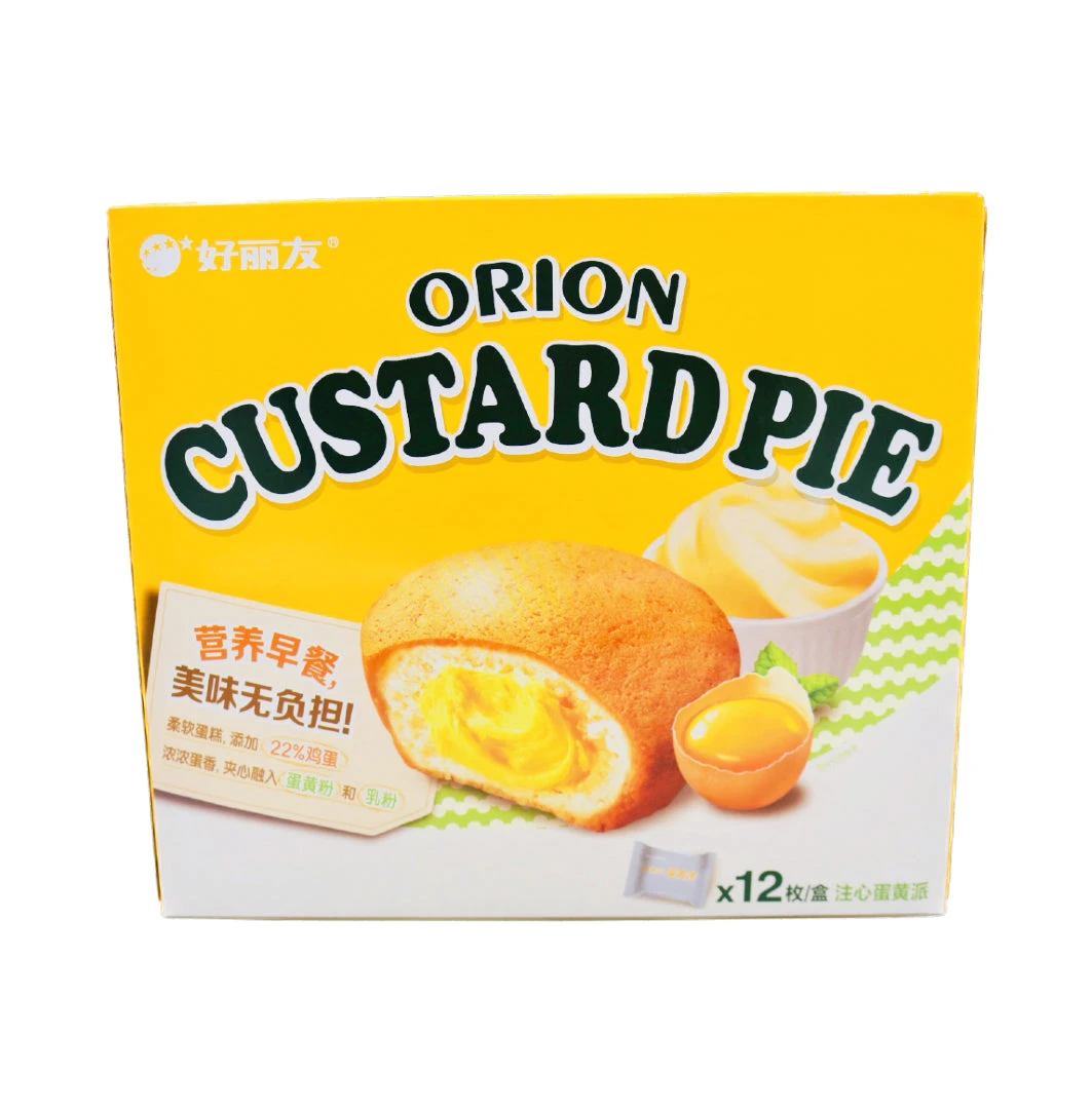 Description: Orion Custard Pie (12 Pcs) 276g. Introducing Orion Custard Pie, the perfect snack for any occasion. With 12 individually wrapped pies in each pack, this delicious treat is perfect for sharing with friends and family. Made with creamy custard filling and flaky pastry crust, it’s a mouth-watering delight that will satisfy your sweet tooth. Includes 276g of pure indulgence.