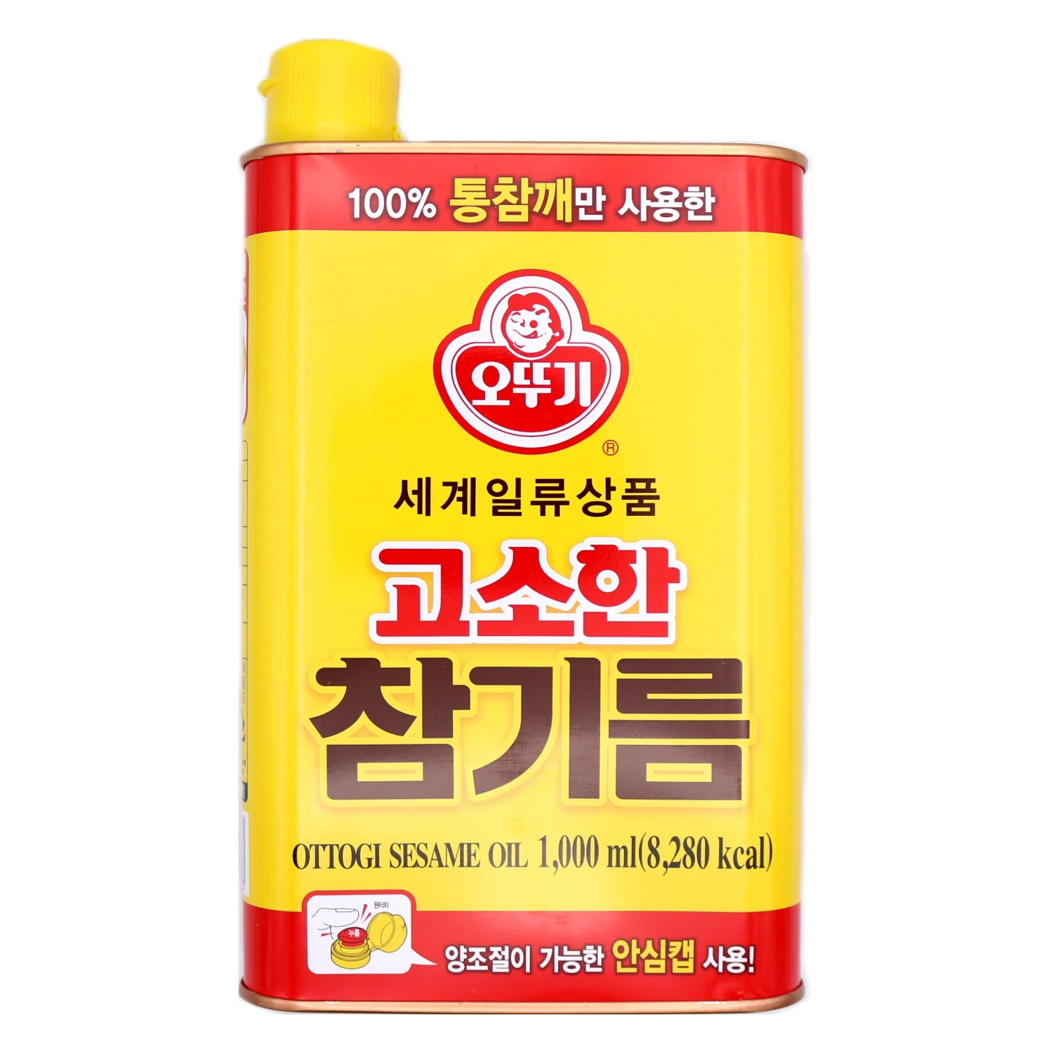 Description: Ottogi Pure Sesame Oil 1L. A litre of pure high-quality Korean sesame oil.