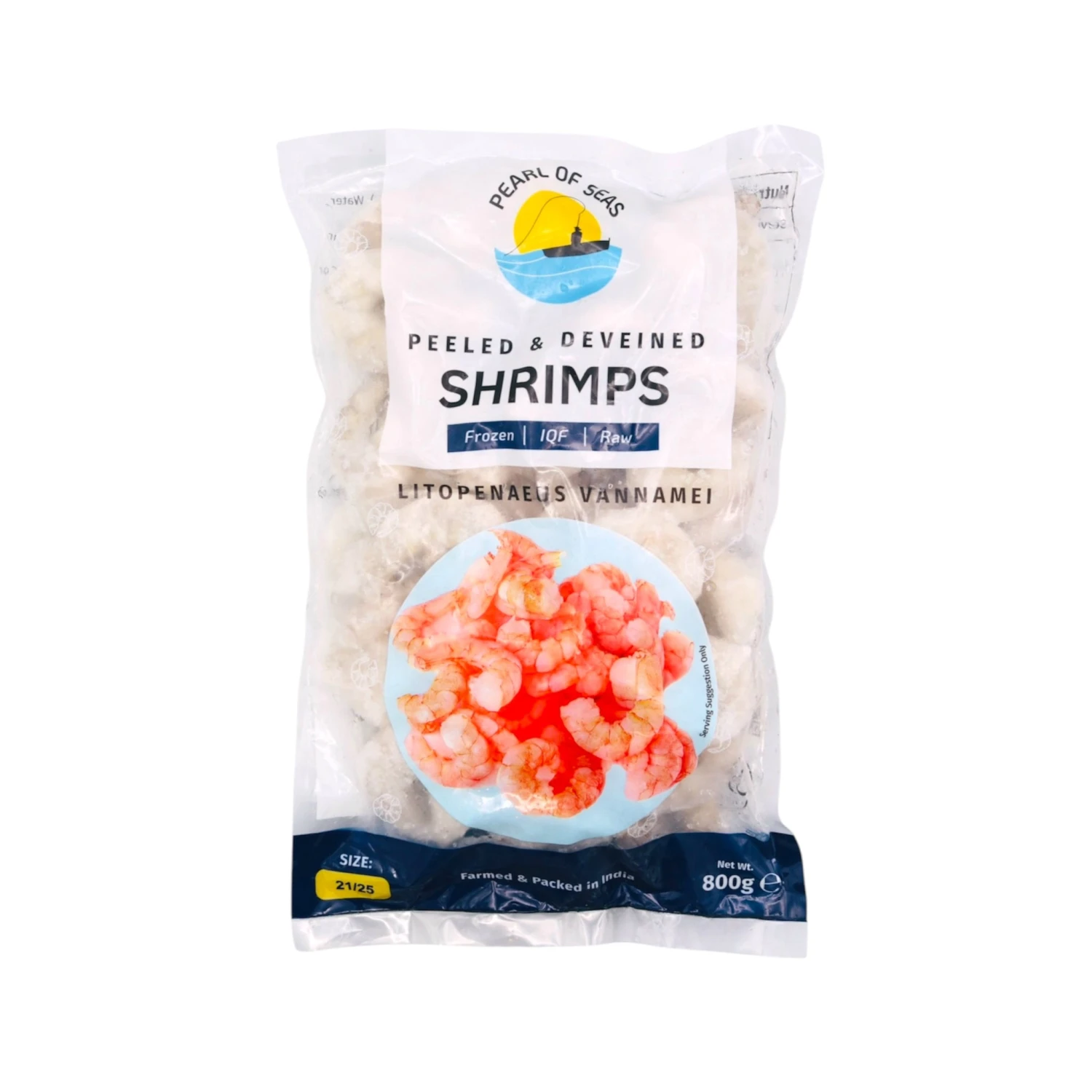 Description: Pearl Of Seas Peeled & Deveined Shrimps (Size 21/25) 800g (Frozen). Indulge in delicious and convenient seafood with Pearl Of Seas Peeled & Deveined Shrimps. These premium shrimps are peeled and deveined, making them easy to prepare and enjoy. With a size of 21/25, they are perfect for any seafood dish. Each 800g bag is frozen, ensuring freshness and flavour. Take your meals to the next level with Pearl Of Seas.