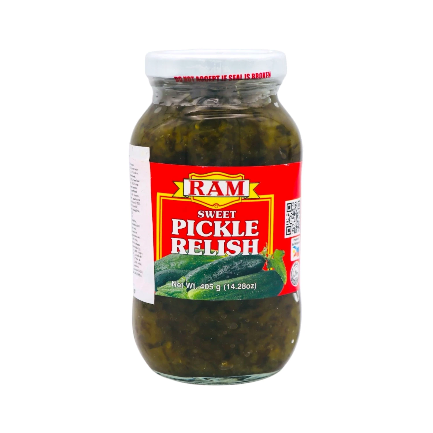Description: Ram Sweet Pickle Relish 405g. This Ram Sweet Pickle Relish is the perfect addition to any meal. Made with high-quality ingredients, it adds tangy and sweet flavours to your favourite foods. Enjoy the 405g jar with zero grams of fat and no added preservatives. Elevate your dishes with this delicious relish.