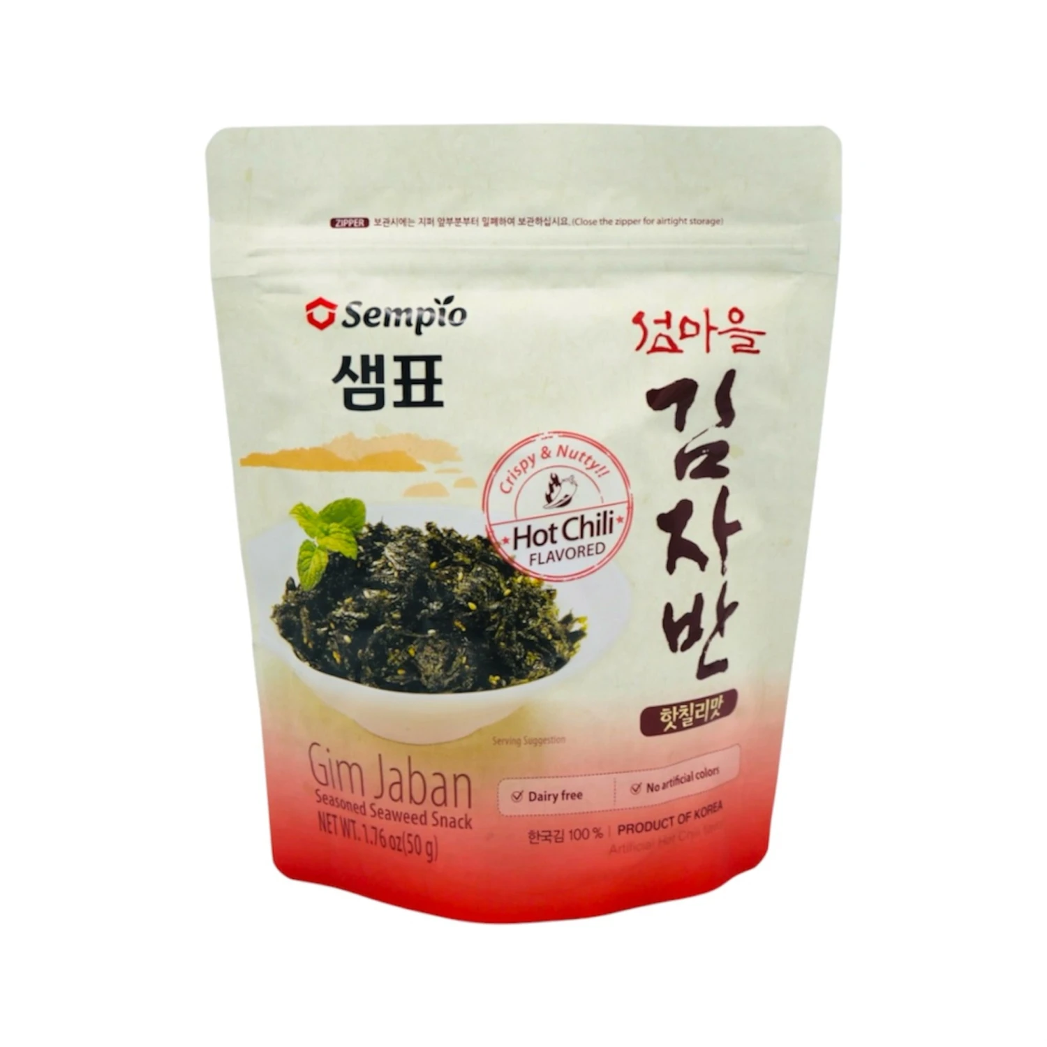 Description: Sempio Gim Jaban Crispy Seaweed Snack Hot Chilli Flavour 50g. Indulge in the perfectly crispy and flavourful Sempio Gim Jaban Crispy Seaweed Snack. Made with real seaweed and infused with a spicy hot chili flavour, this 50g pack offers a delicious and healthy snacking option. Enhance your taste buds with every bite while enjoying the numerous health benefits of seaweed.