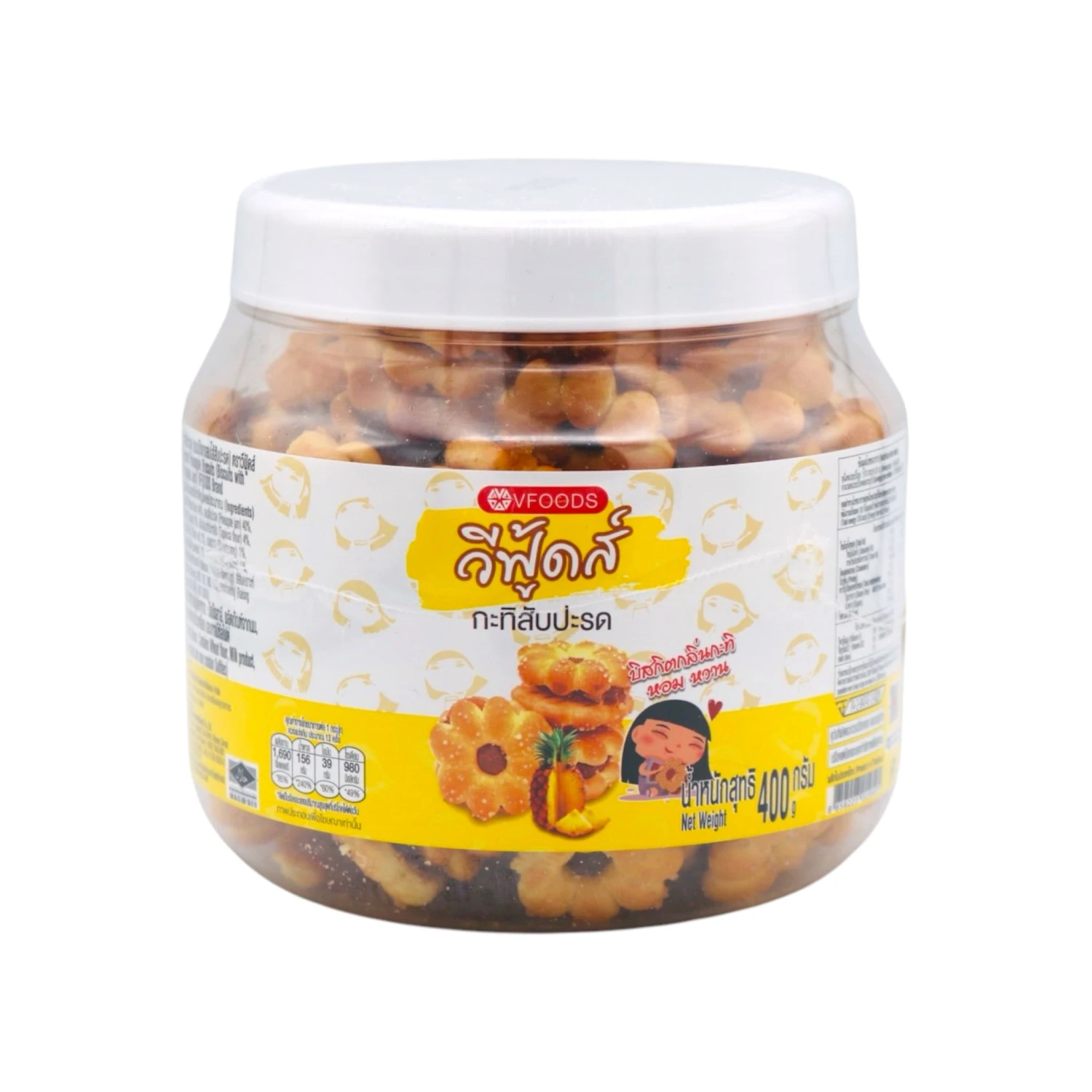 Description: VFoods Coconut Pineapple Biscuit with Pineapple Jam 400g. Discover the perfect tropical twist with VFoods Coconut Pineapple Biscuit. Made with pineapple jam, each bite delivers a burst of juicy flavour. Enjoy the rich coconut and buttery flavours, all in one 400g pack. A delicious treat for any time of the day.