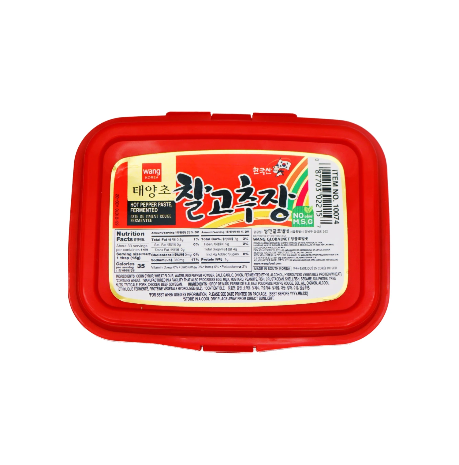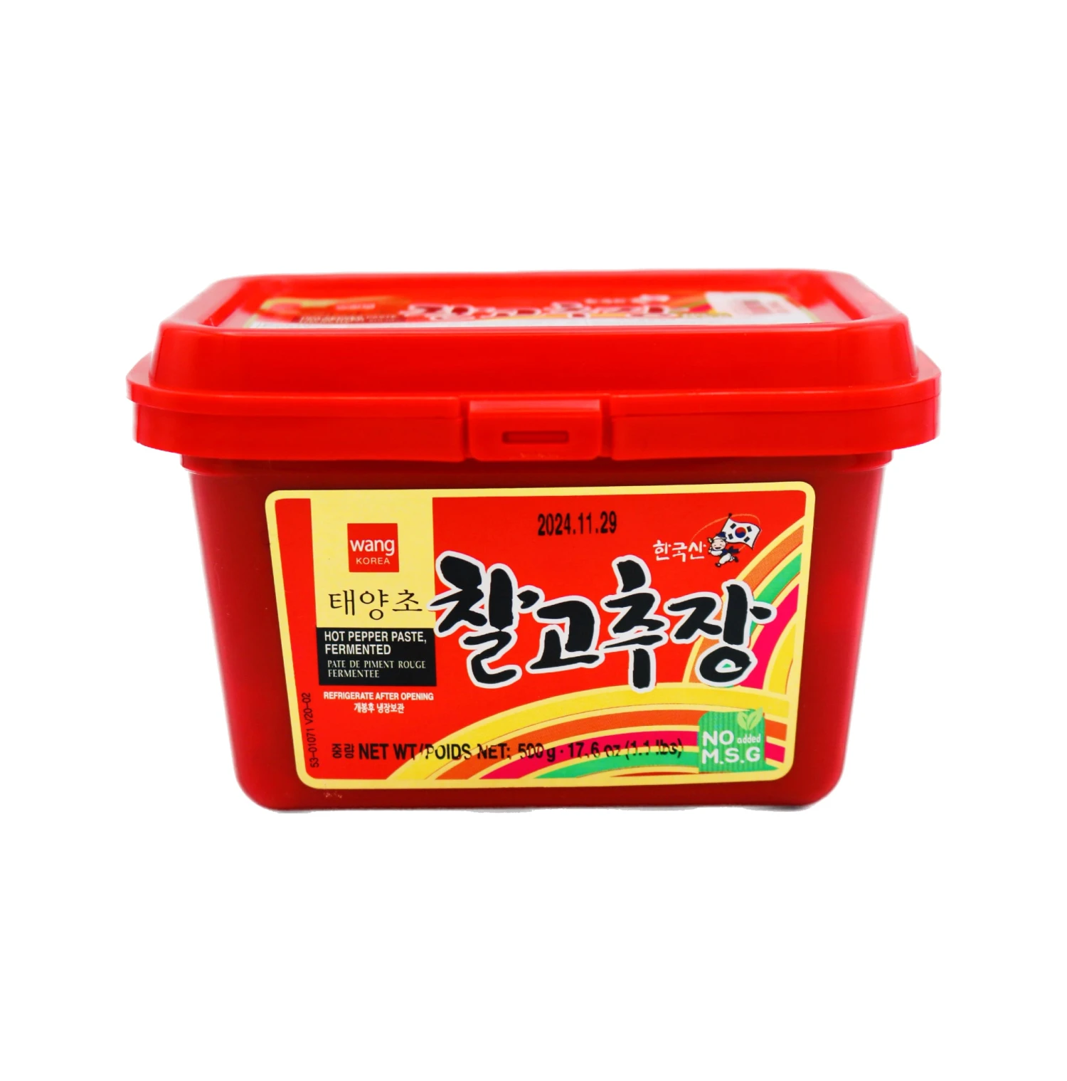 Description: Wang Korea Hot Pepper Paste 500g. Wang Korea’s 500g Hot Pepper Paste is a savoury sauce made with chilli peppers, fermented soybeans, and other spices. It adds a zesty, smoky flavour to any grilled dish, making it perfect for quick marinades, glazes, and rubs. With its palatable heat, it’s sure to please those who like a little spice.