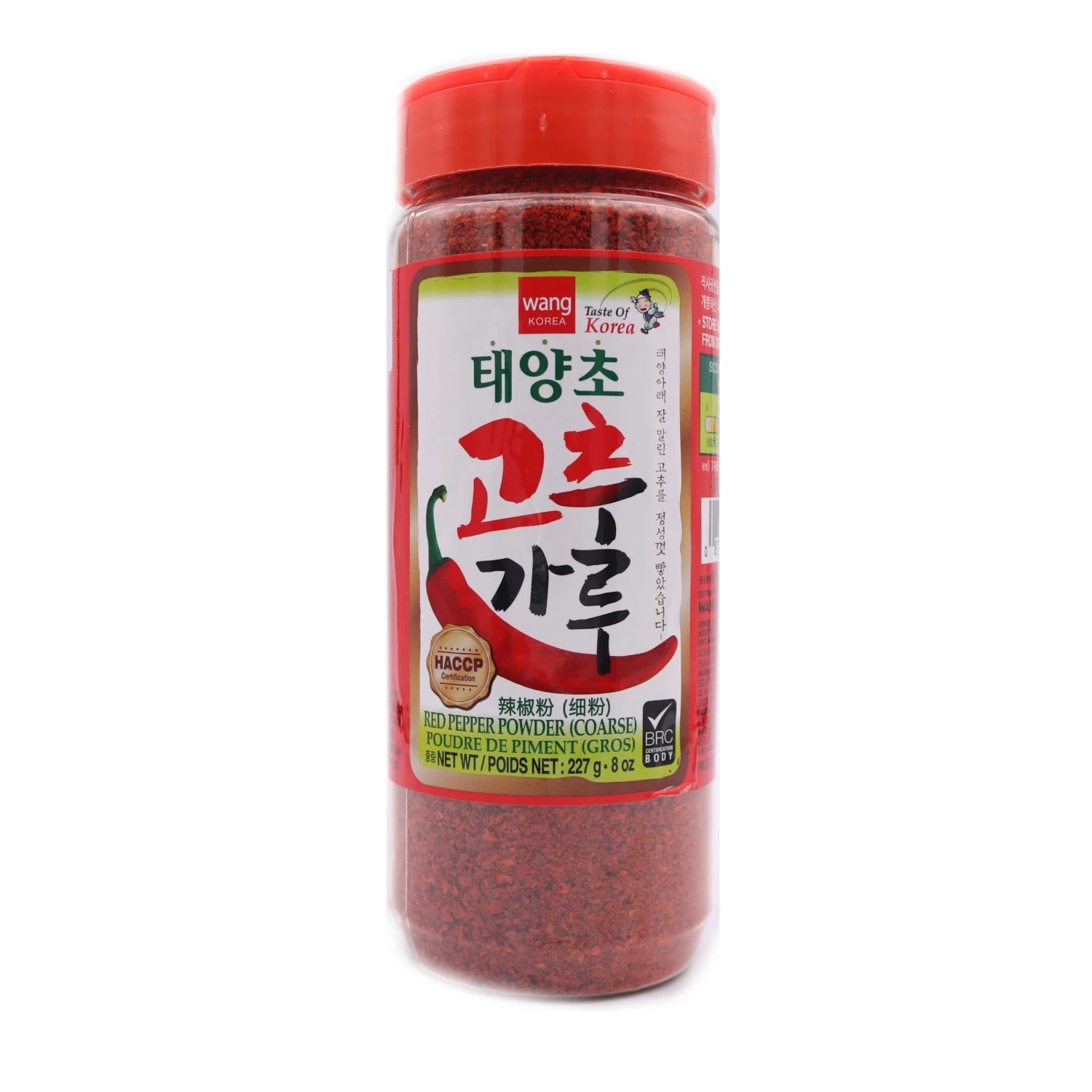 Description:Wang Korea Red Pepper Powder (Coarse) 227g. Wang Red Pepper Powder give a dry and spicy taste and ideal used all year round. It is used as a spice to add pungency or piquancy and flavour to dishes. It is caffeine free and suitable for vegetarians also.