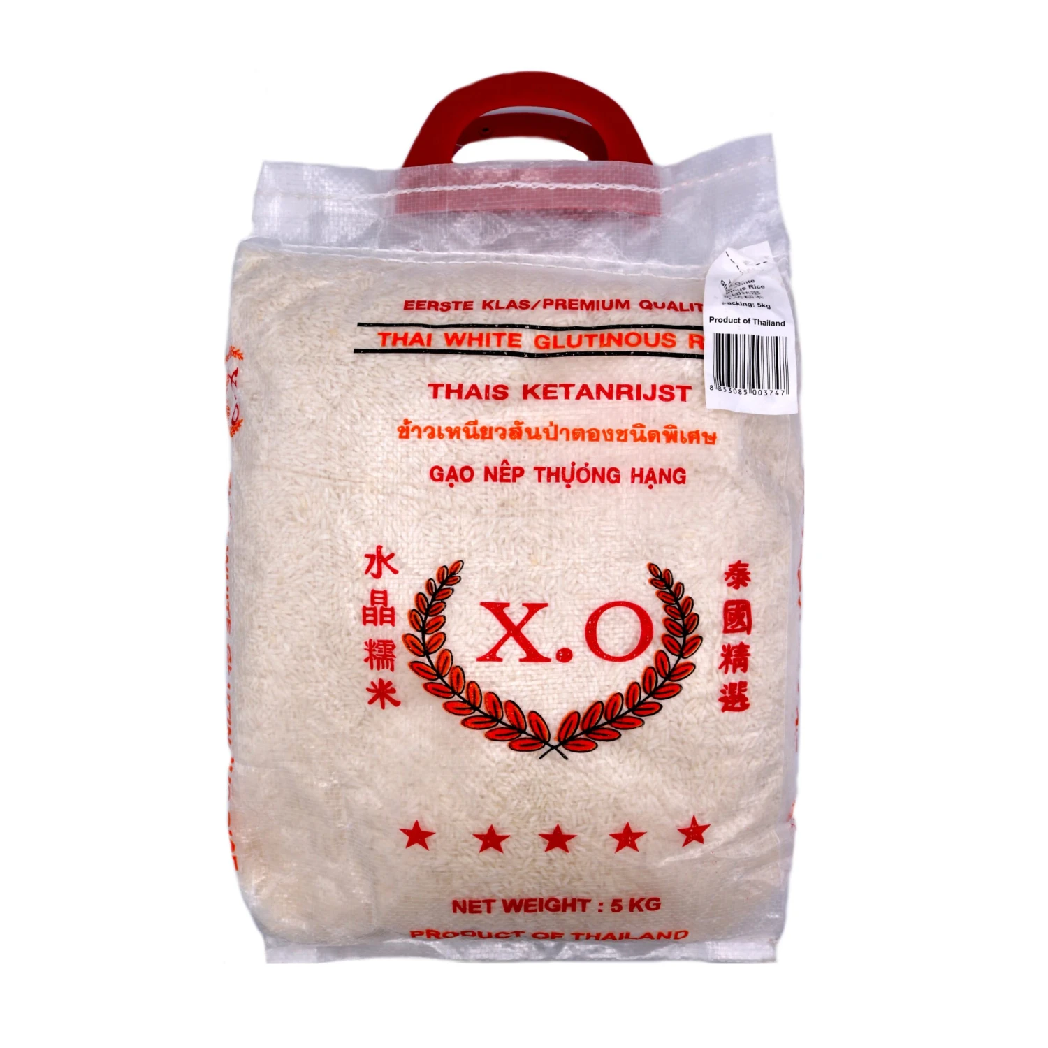 Description: X.O Thai White Glutinous Rice 5Kg. A bag of delicious white glutinous rice from Thailand! Glutinous rice, also known as sticky rice, is a short-grained Asian rice known for its sticky texture. It is widely used in Chinese and South-East Asian cooking, and famously eaten with coconut milk and mango for a traditional Thai dessert!