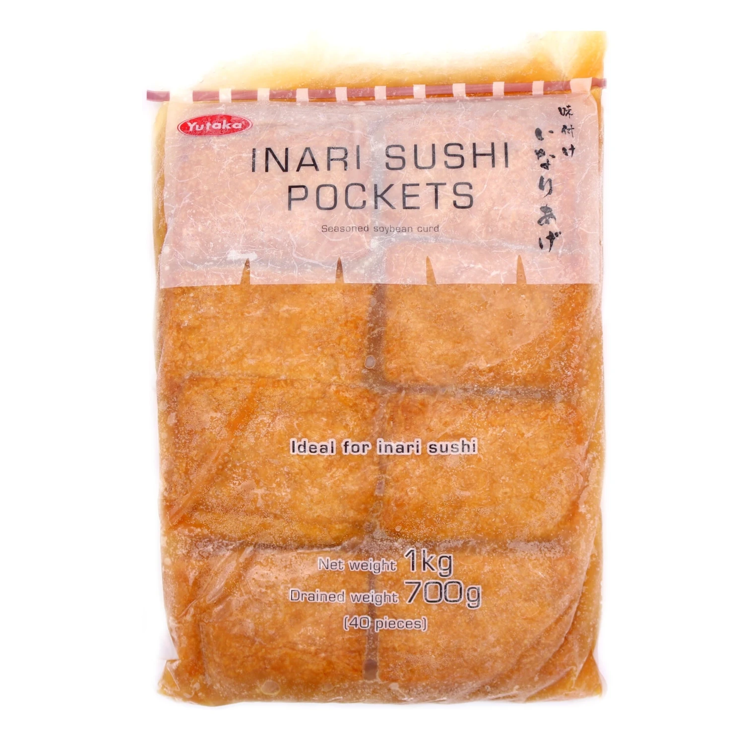 Description: Yutaka Inari Sushi Pockets (Seasoned Soybean Curd) 1kg (40pcs). Named after the Shinto god for fertility, rice, agriculture and foxes (because this was allegedly his favourite food), Inari sushi are deep-fried tofu ‘pockets’ filled with sushi rice. Enjoy these bites of deliciousness on their own, or combine with other sushi and/or bento dishes.
