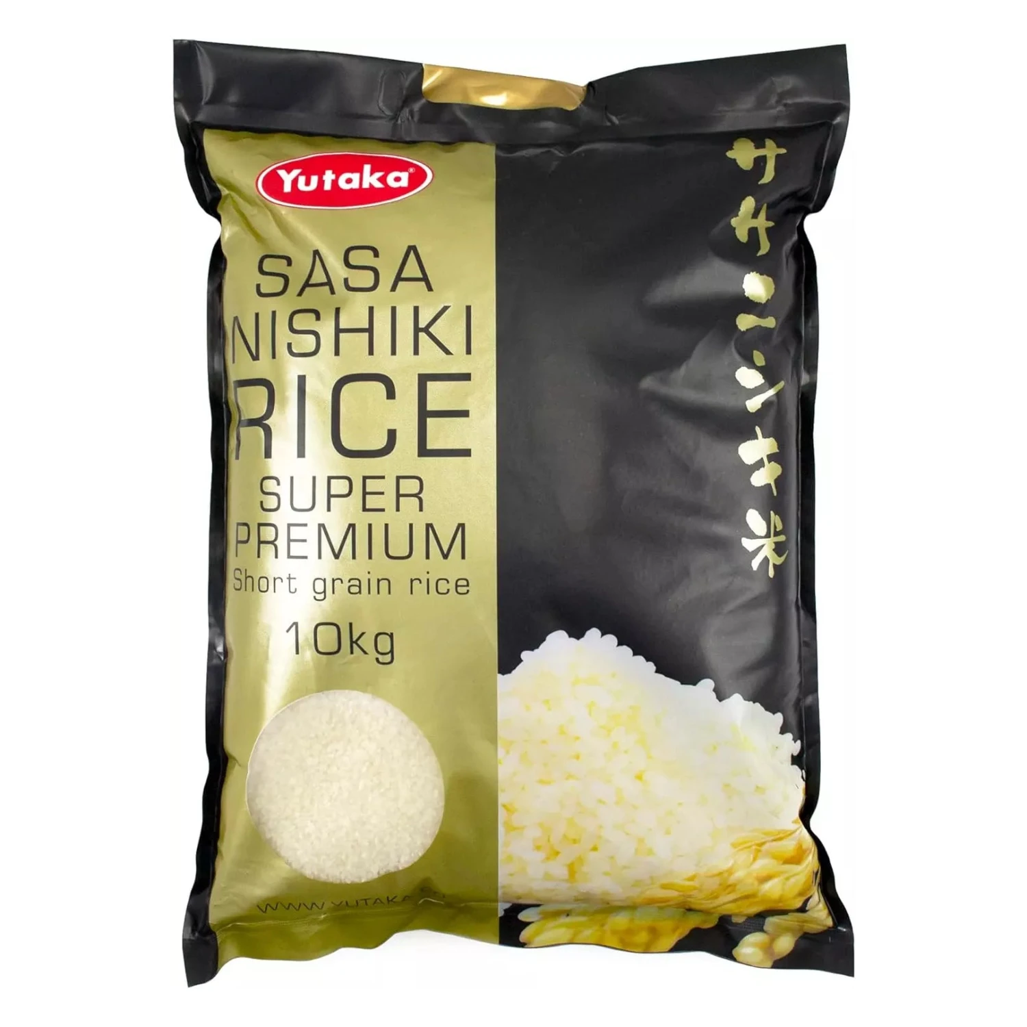 Description: Yutaka Sasa Nishiki Super Premium Short Grain (Sushi) Rice 10KG. This rice is the Sasa-Nishiki variety (first developed in Miyagi prefecture, Japan) and produced in Chiang Rai Province which adjoins Myanmar and Laos in the northernmost area of Thailand. Chiang Rai is famous as the area where the Lanna Dynasty once reigned. “Lanna” literally means “millions of paddy-fields”. The land is surrounded by high mountains, enjoys cold and clean water and a relatively cooler climate: the best possible production conditions for the Sasa-Nishiki variety of rice. Yutaka Sasa-Nishiki rice is short grain and has a shiny and fluffy appearance when cooked. It is less sticky, has a lighter flavour and also keeps a good flavour when eaten cold. The rice doesn’t become too sticky when seasoned with sushi vinegar, thus it’s the most suitable rice for making sushi.