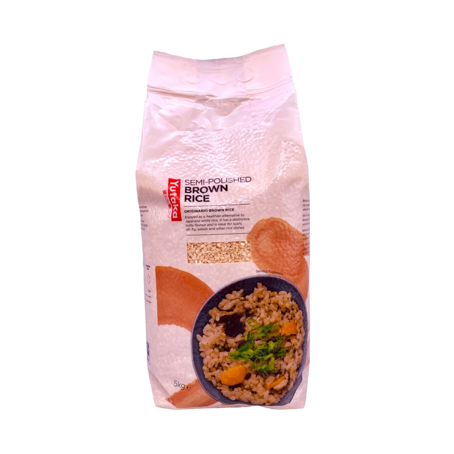 Description: Yutaka Semi-Polished Brown Originario Sushi Rice 5kg. This is just what you need if you’re hoping to make maki sushi, nigiri, onigiri and more! This rice contains more fibre, calcium, iron and vitamin B1 and E than standard white rice.