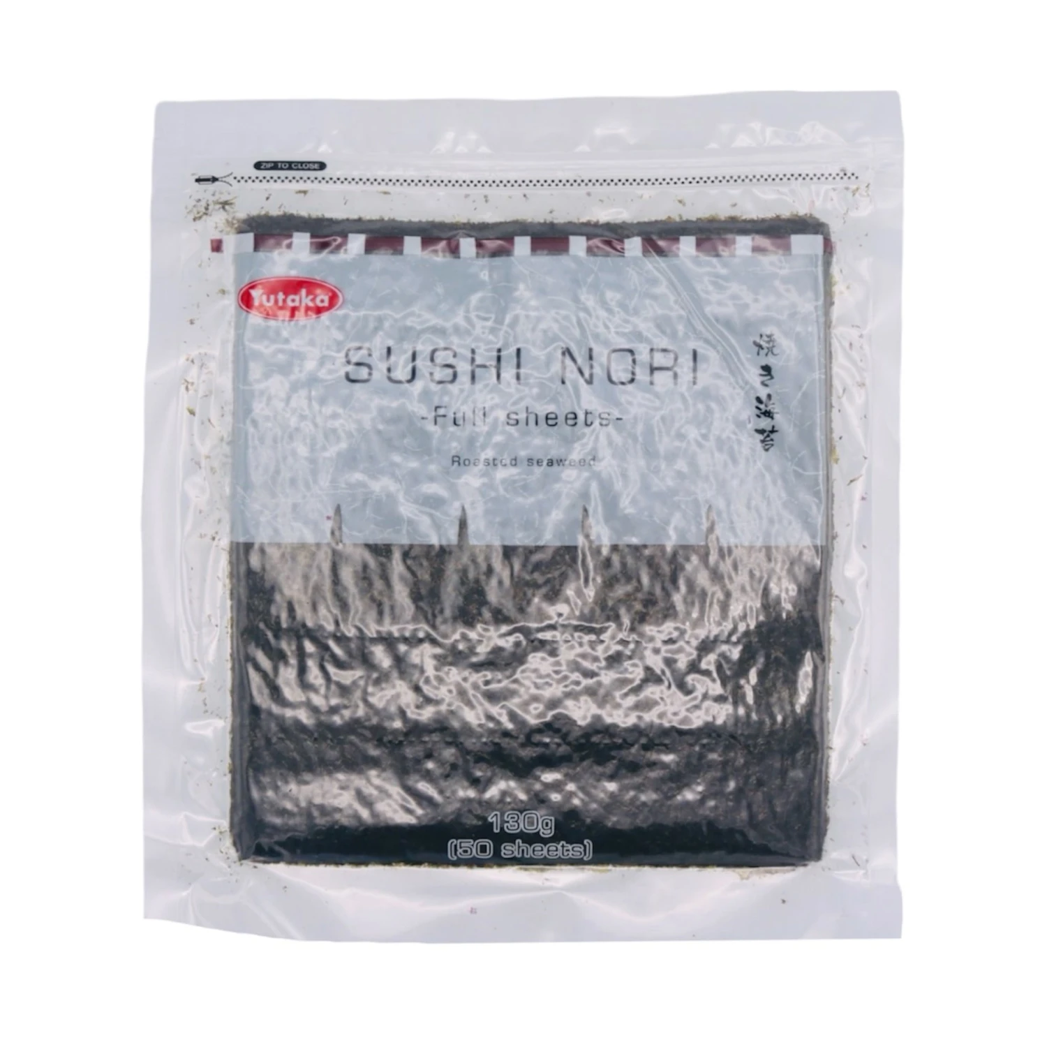 Description: Yutaka Sushi Nori Full Sheets (50 Sheets) 130g. Yutaka Sushi Nori Full Sheets are perfect for creating authentic and delicious sushi dishes. Made from premium quality seaweed, these full sheets are packed with essential nutrients and offer a crisp texture for a satisfying bite. Each pack contains 50 sheets, making it the ideal choice for all your sushi needs.